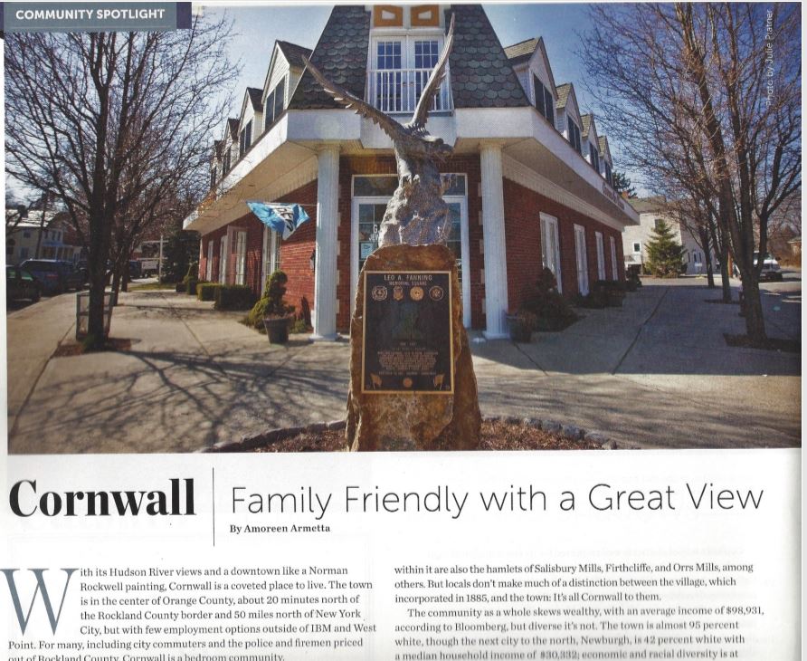 Cornwall combines a charming Main Street atmosphere in the Village with outstanding outdoor recreation. Cornwall School District is ranked among the best in the state (ranked 95 out of 801 on www.schooldigger.com). The town is also ranked 13th on Value Penguin’s list of the 2015 Safest Places in New York.