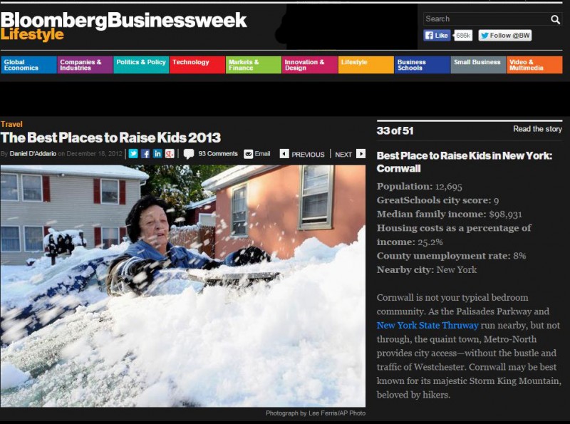 (Bloomberg Newsweek) Cornwall is not your typical bedroom community. As the Palisades Parkway and New York State Thruway run nearby, but not through, the quaint town, Metro-North provides city access - without the bustle and traffic of Westchester. Cornwall may be best known for its majestic Storm King Mountain, beloved by hikers.